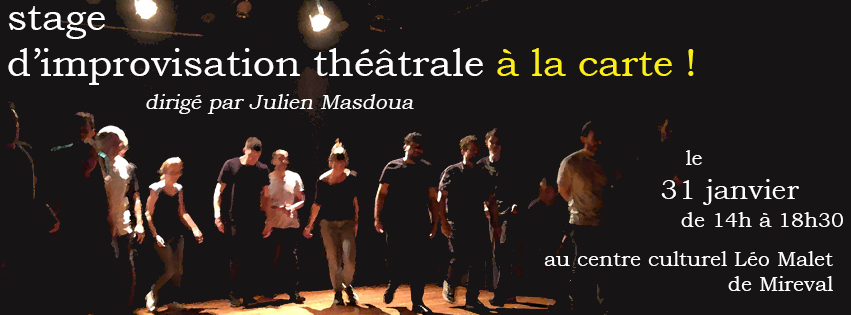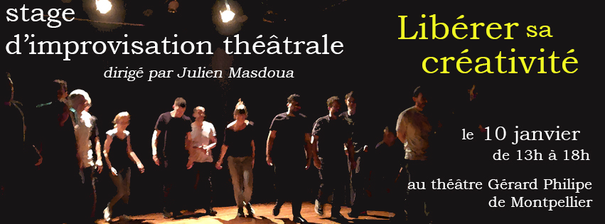Samedi après midi : Julien Masdoua propose un stage de théâtre pour débutants et confirmés autour du thème " Utiliser sa voix" et c'est dans le magnifique théâtre Jacques Coeur de Lattes. Venez et vous allez halluciner de tout ce que vous pouvez faire avec votre voix ! Toutes les infos sont ici : www.compagnieducapitaine.com/stages-dimprovisation/